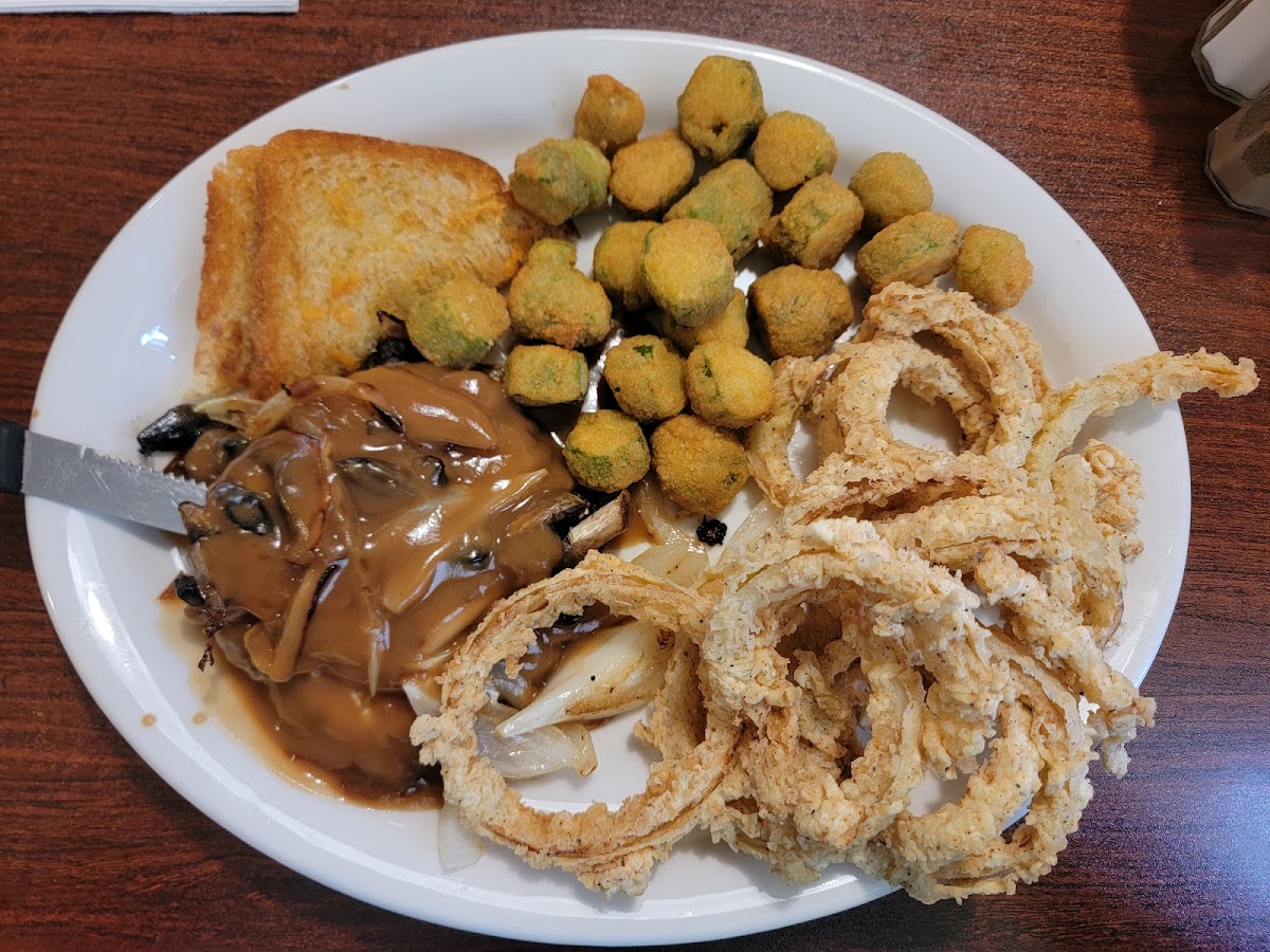 Comfort food at its finest. No drive-through, but they will willingly bring it out to your car if you choose. The french fries are perfect to dip in some creamy gravy, because this is comfort food after all. However, if you don’t need quite that much comfort, they’re great with catchup as well. I enjoyed the hamburger, but my favorite part of the meal was the fried okra! Delicious!
