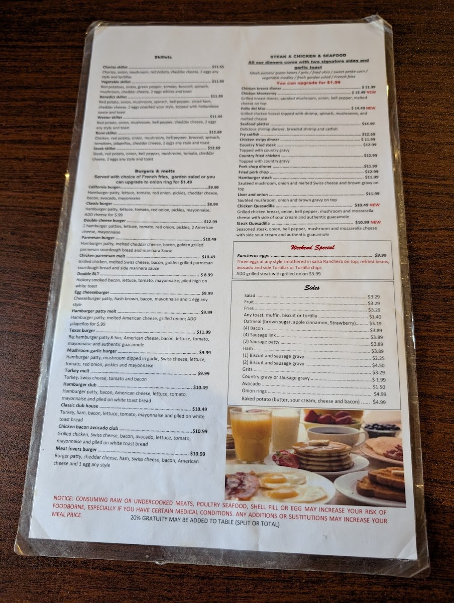 This is a spot where meals feel approachable and unpretentious, perfect for those seeking the ease of familiar, well-prepared dishes any time of day. The menu’s simplicity and variety help make each visit comfortable and straightforward, with customer service focused on attentiveness and accommodating individual preferences.